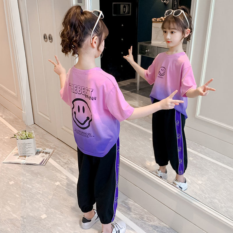 Girls Summer Set 2021Years New Kids Summer Western style Net Red Zhongshan University Child Motion Girl 12 Years 13