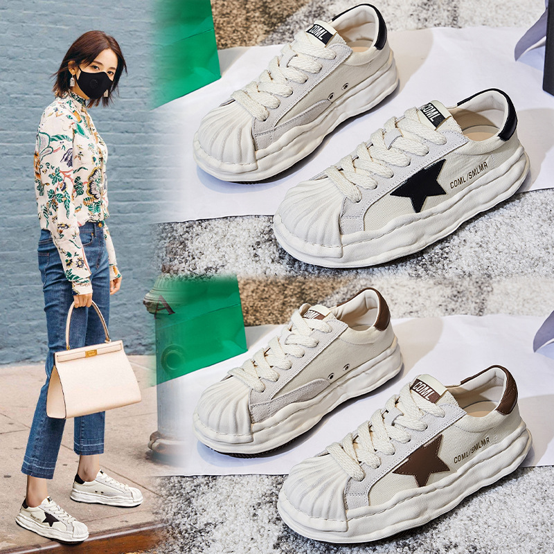 情侣款真皮德训鞋子女2021新款单鞋平底女鞋厚底小白鞋女秋大码44
