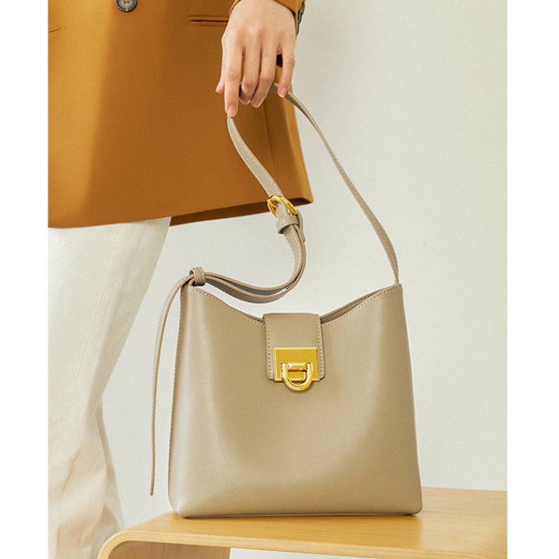 2021时尚大容量单肩包爆款女土精致百搭斜挎包水桶包新款潮真牛皮