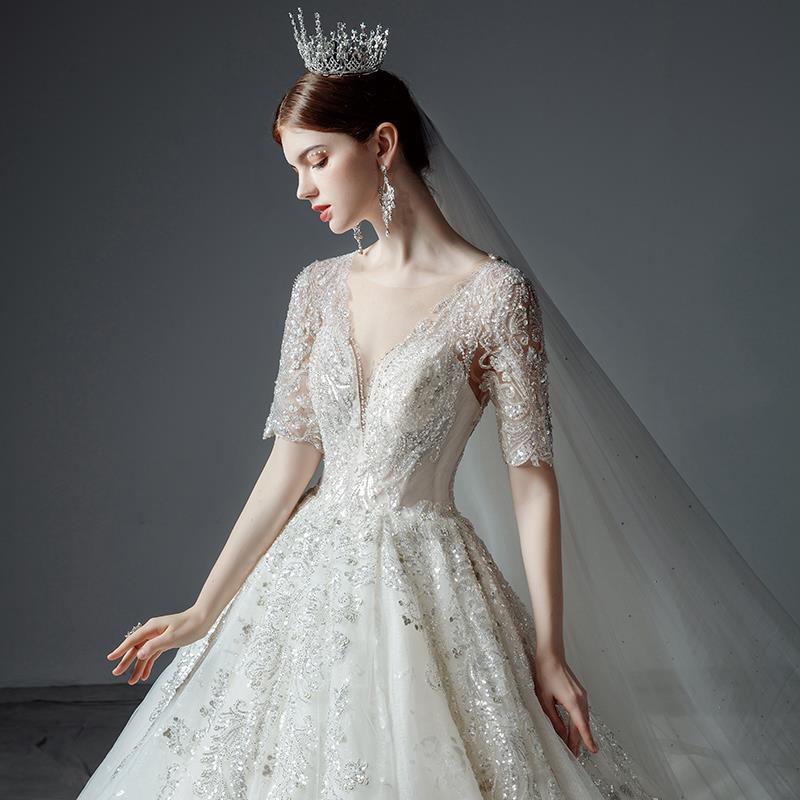 主轻婚纱2021新款新娘宫廷风气质拖尾小个子星空简约齐地高端