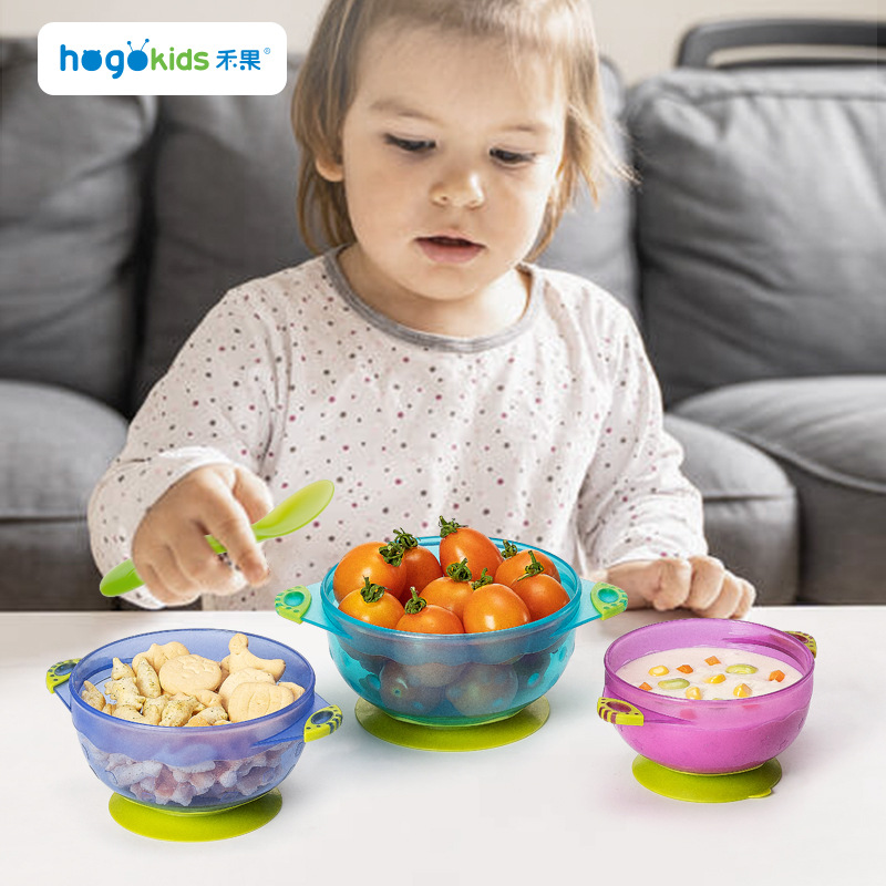 【产品介绍】:共有三个大中小不同的吸盘碗,配有独立的密封盖。外观色彩靓丽、图案丰                 富、造型可爱,吸引孩子的注意,让宝宝快乐进食。产品巧妙设计了底部吸                 盘,密封盖子、防滑把手等功能,减轻了家长在孩子练习吃饭过程中的各种烦               恼,实现快乐喂养的目的。
