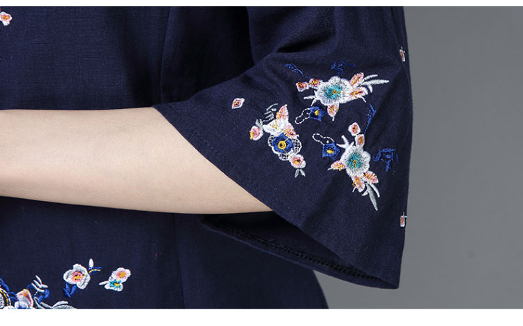 透气清爽夏日好货2020夏新款文艺棉麻连衣裙印花圆领长款女裙批发