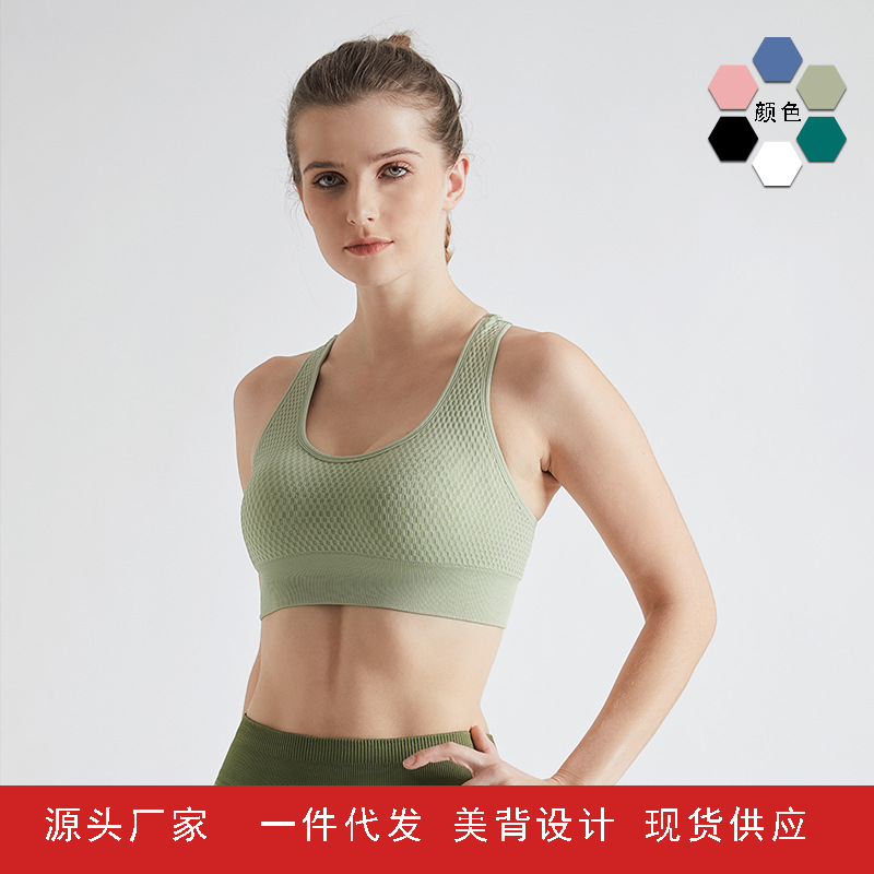 2020新款运动内衣女防震吸湿高弹聚拢无钢圈蜂窝瑜伽跑步健身文胸