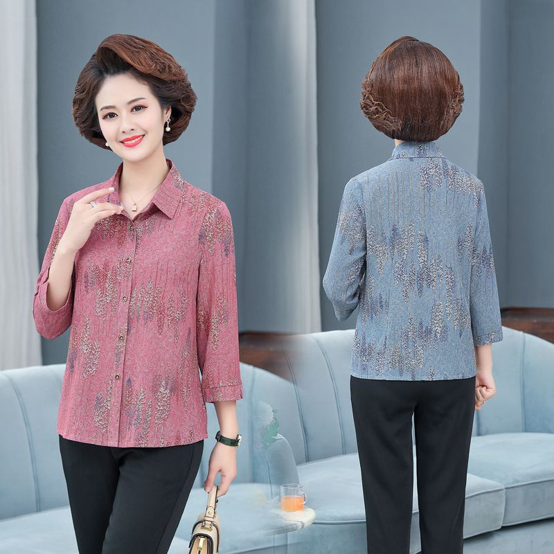中老年女春夏装衬衣大码洋气上衣女七分袖奶奶装春秋衬衫妈妈装薄
