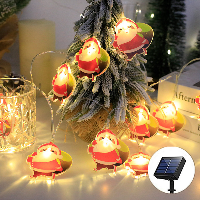 太阳能led圣诞老人装饰灯串派对布置节日礼物户外灯串亮化庭院