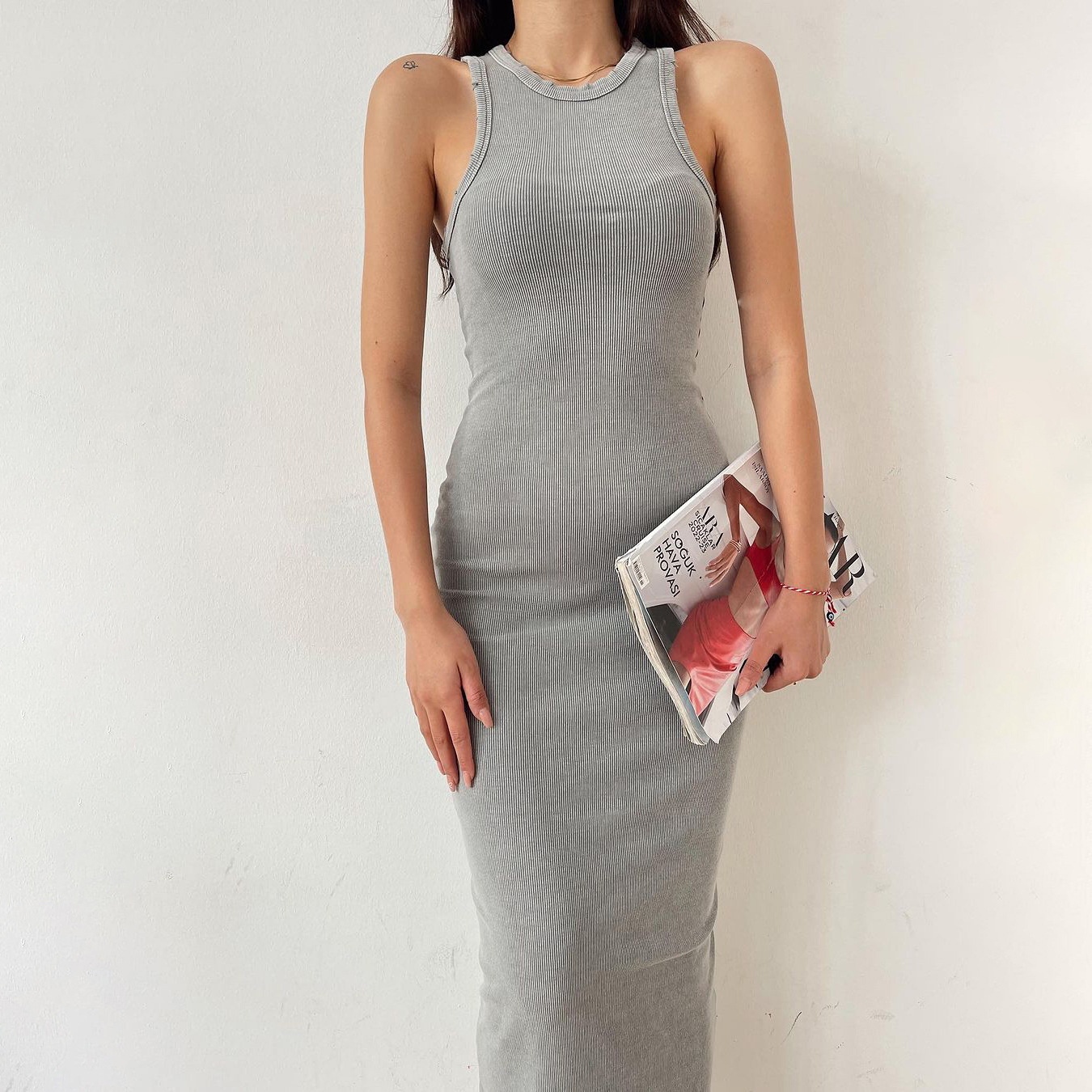 美式复古圆领背心连衣裙女废土风中长款基础夏季女装欧美做旧紧身