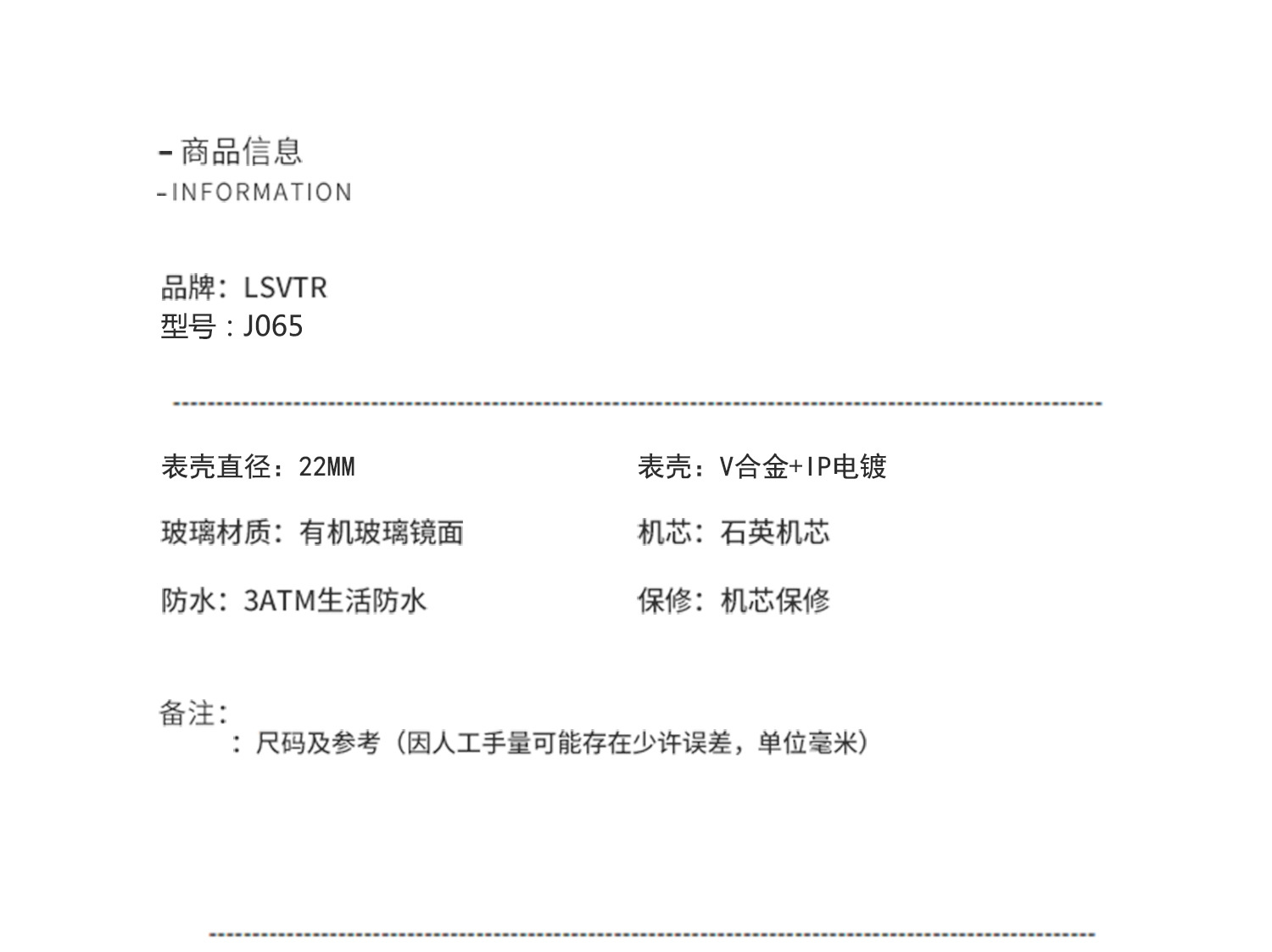 1:本店为LSVTR品牌工厂直销,批发零售淘宝热卖爆款手表,货源稳定质量可靠。本公司长期招聘淘宝全职兼职代理,速卖通及微商代理,支持一件代发。本品不包含包装,如需表盒包装请另拍。