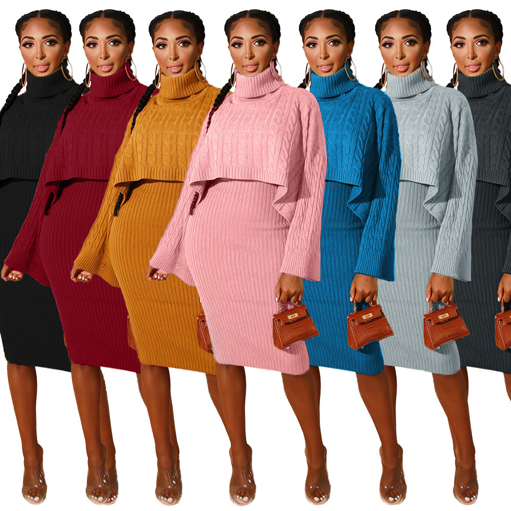 A6273 Sweater Skirt Two-Piece Set Cross-border for independent stand Amazon Europe and America women's fashion turtleneck sweater