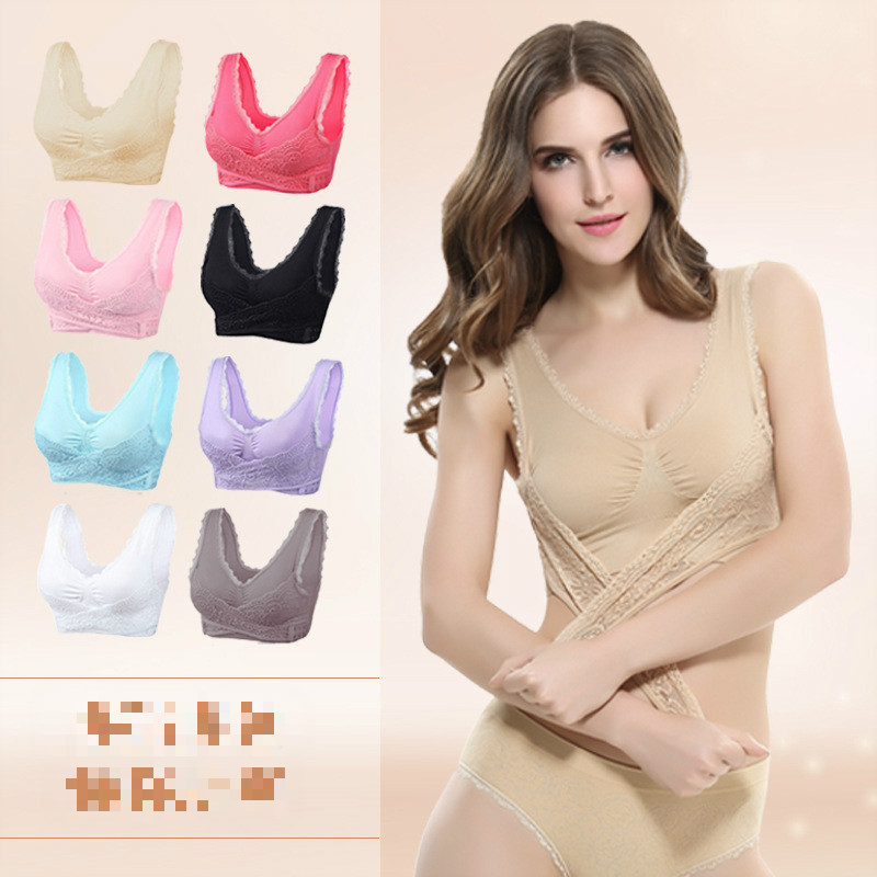跨境前交叉侧扣内衣聚拢蕾丝无钢圈运动文胸跑步瑜伽防震背心女
