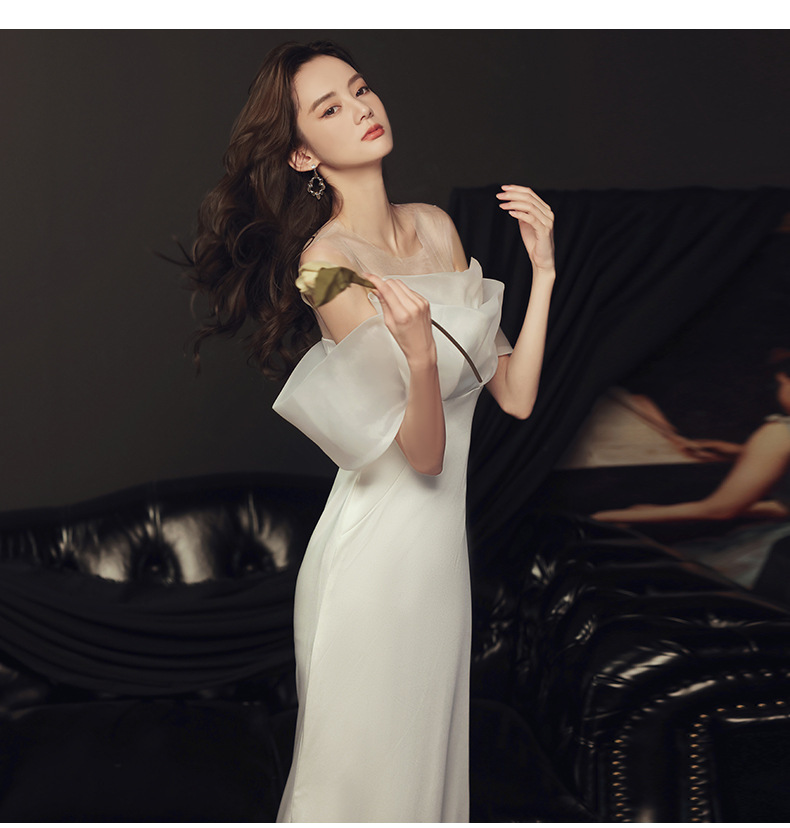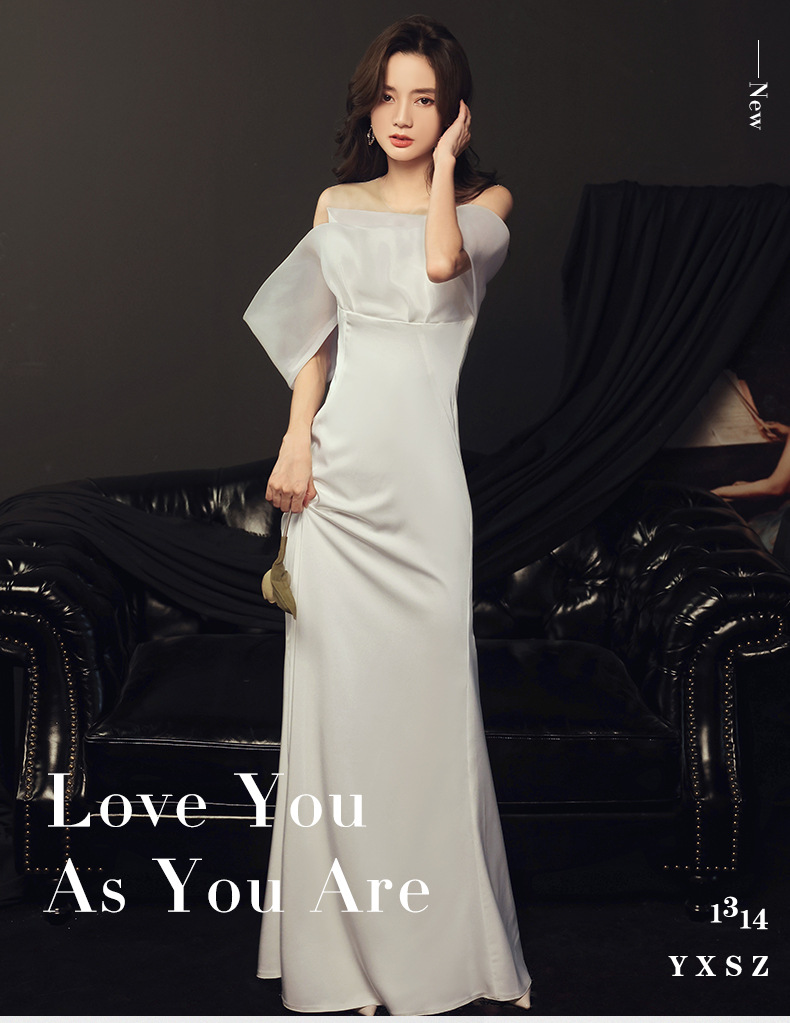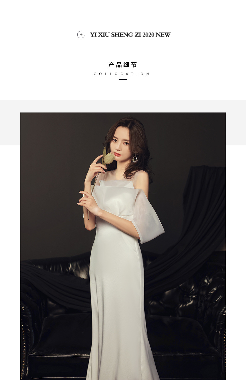 轻婚纱旅拍吊带深V领法式白色宴会舞台表演主持晚宴长裙晚礼服